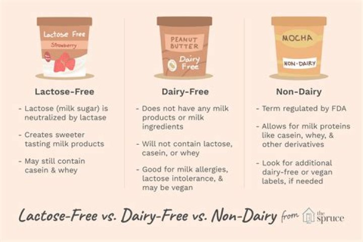 The main difference is that lactose-free products are made from real dairy, while dairy-free products contain no dairy at all. Dairy-free products are made from plants, such as nuts or grains. Neither lactose-free products nor dairy-free products contain lactose.
