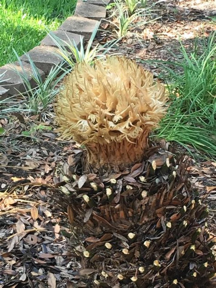Sago palms of all sizes have just one set of new leaves a year, but they usually don’t produce leaves if they’re going to flower. Plants don’t flower every year even when they are old enough, producing a cone around every two or three years.