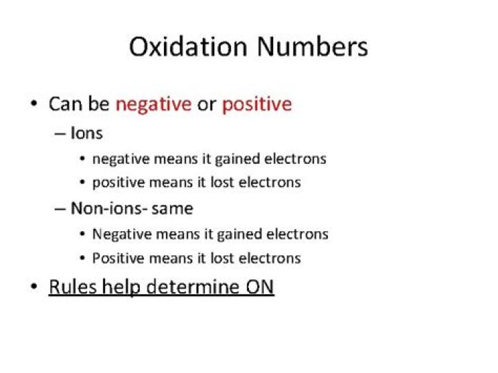 Lesson Summary Oxidation numbers can be positive, negative, or zero, and they are assigned to atoms. The oxidation number indicates whether or not an atom undergoes oxidation (positive) or reduction (negative).