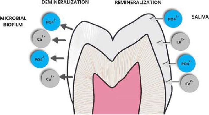 Remineralization occurs on a daily basis after attack by acids from food, through the presence of calcium, phosphate and fluoride found in saliva. Saliva also acts as a natural buffer to neutralise acid, preventing demineralisation in the first place.
