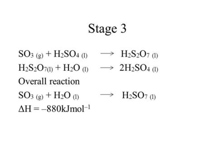 H2SO4 (l) H2O (g) + SO3 (g). The reverse reaction is how to make sulfuric acid. For safety data, click here.