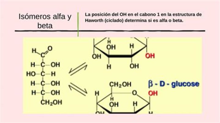Cuando el hidroxilo está debajo, se dice que la glucosa está en su forma alfa (α) y cuando está arriba, que está en su forma beta (β).