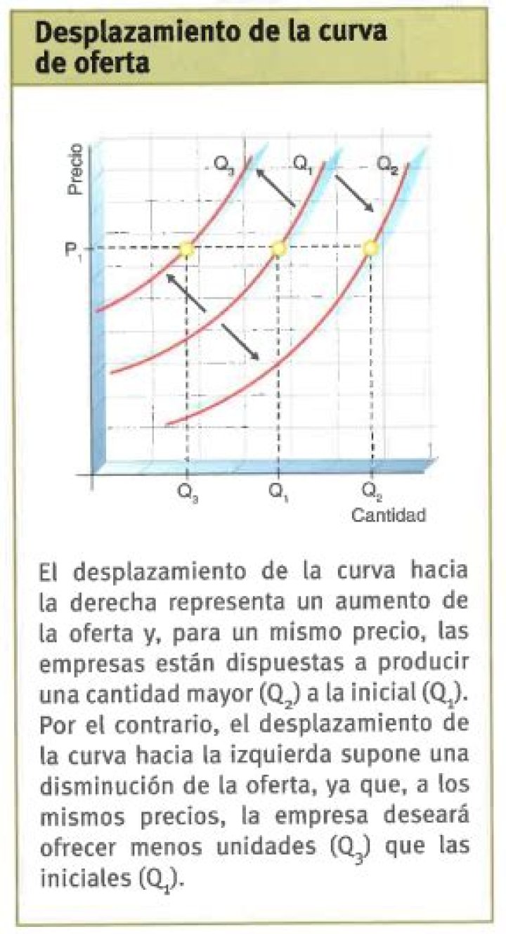 Los desplazamientos de la curva de la oferta están causados por cambios en los precios de la producción, innovaciones tecnológicas y del número de empresas en la industria.