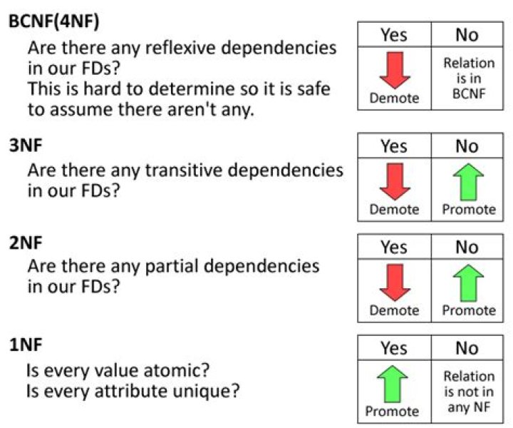 - 3NF: Eliminate Transitive Dependency.