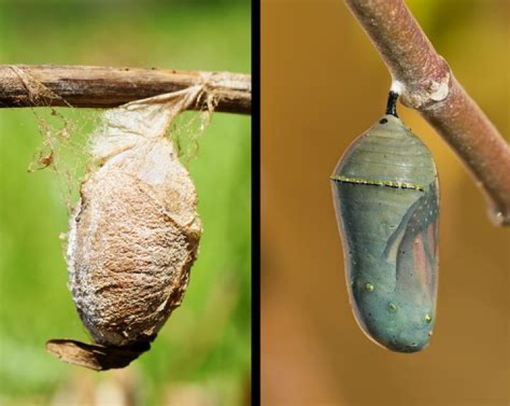 While pupa can refer to this naked stage in either a butterfly or moth, chrysalis is strictly used for the butterfly pupa. A cocoon is the silk casing that a moth caterpillar spins around it before it turns into a pupa. … Many butterfly pupae are cryptic and blend into their surroundings.
