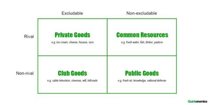 Club goods is a term that refers to goods at the interface between private goods and public goods. The basic features are non-rivalrous consumption and excludable consumption.What is the difference between club goods and common goods?