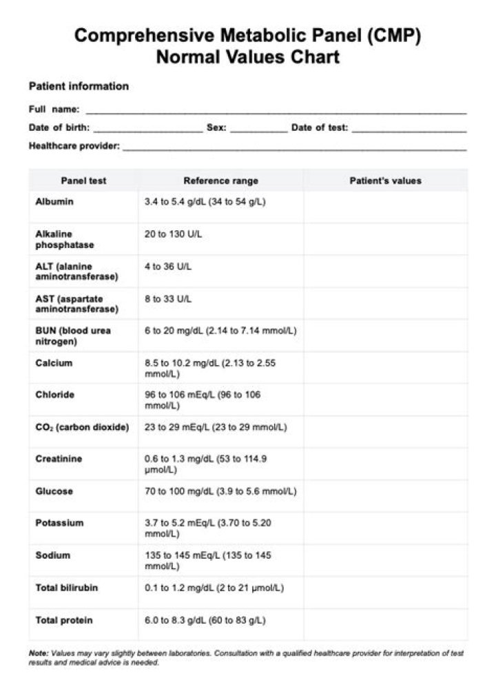 What are normal values for CMP
