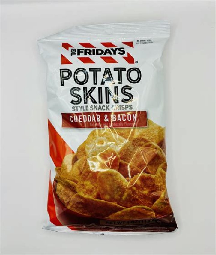 TGI Fridays® potato skins cheddar & bacon flavored snack chips are made from real potatoes to give you thick, crunchy chips that deliver big cheddar & bacon taste. … TGI Fridays opened its first restaurant in 1965, and today, its legacy of fun and fantastic food continues. No trans fat. Certified GF, Gluten-Free.
