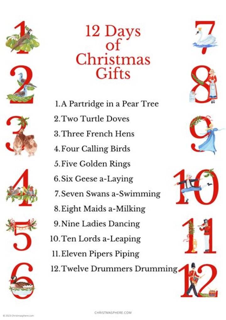 What are the 12 gifts in the 12 days of Christmas