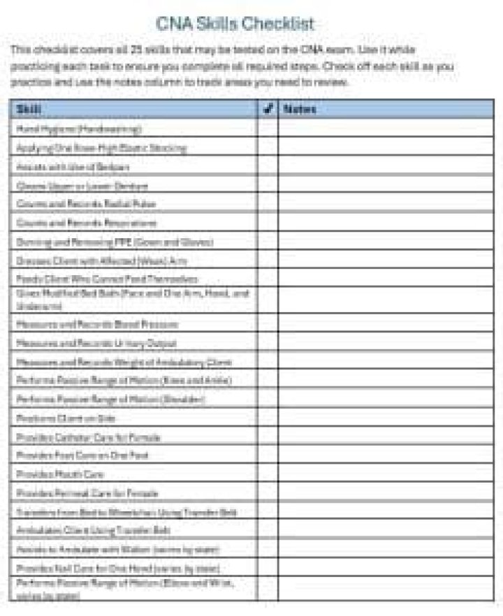 You will not know in advance which skills will be tested until the day of the skills test. This means that you must learn all 30 skills in order to be prepared to pass the skills test and become a certified nursing assistant.
