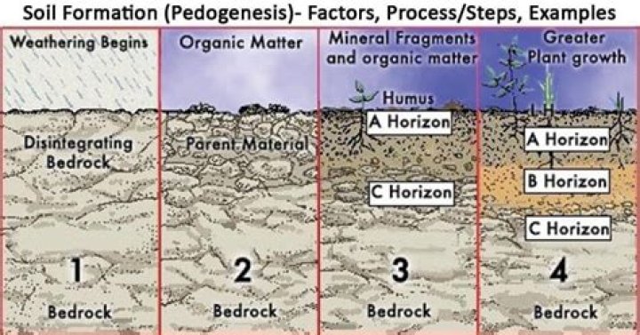Soil formation begins with the physical and chemical breakdown of the earth’s rocks, caused by atmospheric agents. These processes, known as weathering, chip away rock fragments and thus modify its inherent physical and chemical characteristics.