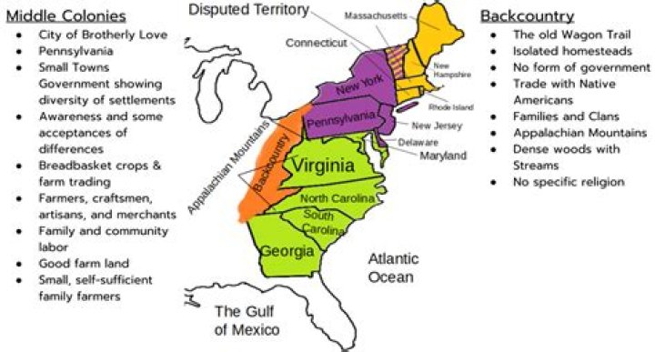 - Middle Colonies: New York, Pennsylvania, Delaware, and New Jersey.