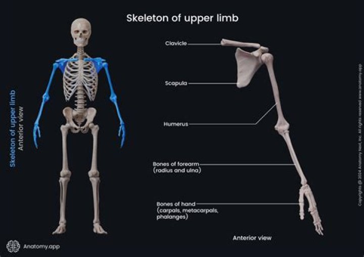 The femur bone is the longest and strongest bone in the body. Located in the thigh, it spans the hip and knee joints and helps maintain upright posture by supporting the skeleton. 2. The humerus bone is in the upper arm and spans the shoulder and elbow joints.
