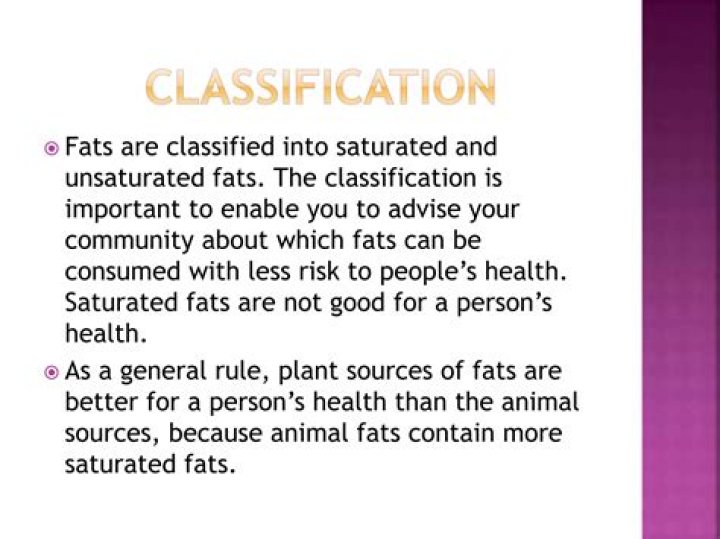 The difference between saturated and unsaturated fat lies in the number of double bonds in the fatty acid chain. … Saturated fats tend to be solid at room temperature and from animal sources, while unsaturated fats are usually liquid and from plant sources.