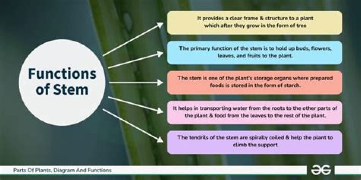 A stem connects the roots to the leaves, provides support, stores food, and holds the leaves, flowers, and buds.