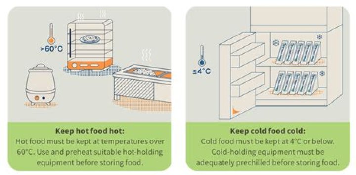 Putting food into cold equipment means it might not be kept hot enough to stop harmful bacteria growing. THINK TWICE! Hot food must be kept at 63°C or above, except for certain exceptions.