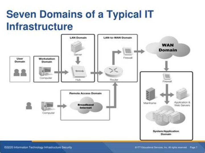 Seven Domains of IT Infrastructure Seven domains can be found in a typical IT infrastructure. They are as follows: User Domain, Workstation Domain, LAN Domain, LAN-to-WAN Domain, Remote Access Domain, WAN Domain, and System/Application Domain.