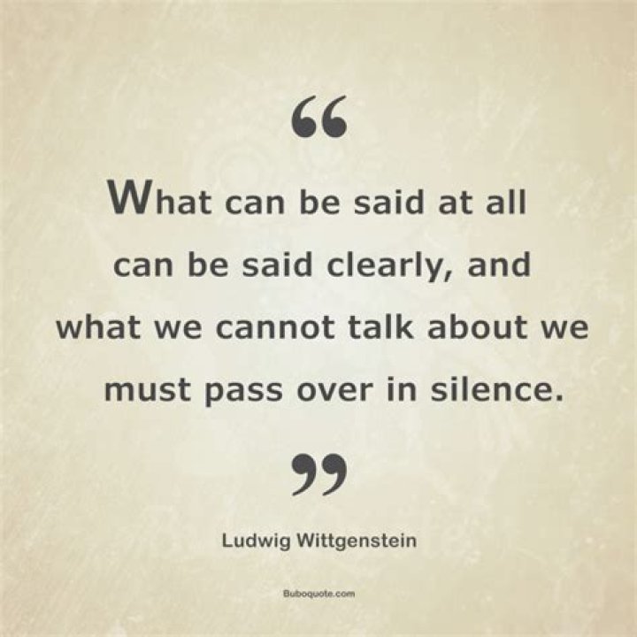 “What can be said at all can be said clearly; and what we cannot talk about we must pass over in silence.” [“Was sich überhaupt sagen läßt, läßt sich klar sagen; und wovon man nicht reden kann, darüber muß man schweigen”] is a dictum by by Austrian philosopher Ludwig Wittgenstein.