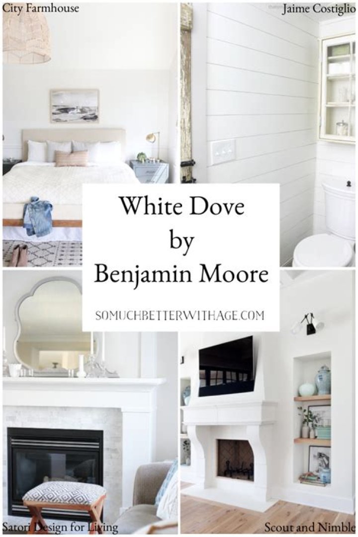 White Dove “lives” more in the middle of the yellow hue family so it’s less likely to show with green-yellow overtones in certain conditions. … If the wall color has at least 0.20 more/less in Chroma, then White Dove will look like a clean, crisp creamy white and unlikely to appear dirty/dingy.