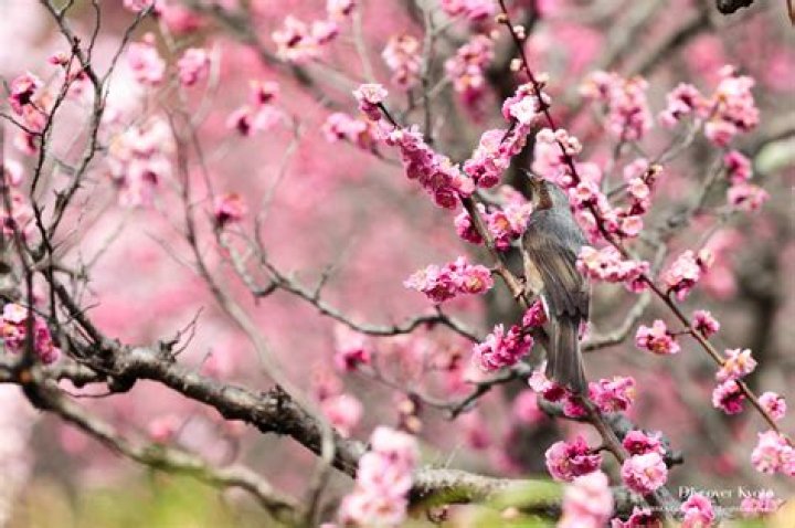 Both plum trees and cherry trees are known for their frothy white, pink or red blossoms.