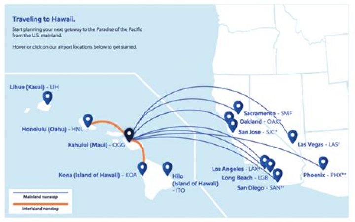 Interisland FlightsHonolulu (HNL) on OahuHilo (ITO) on Hawaii IslandKona (KOA) on Hawaii IslandLihue (LIH) on KauaiKahului (OGG) on MauiKona (KOA) on Hawaii Island