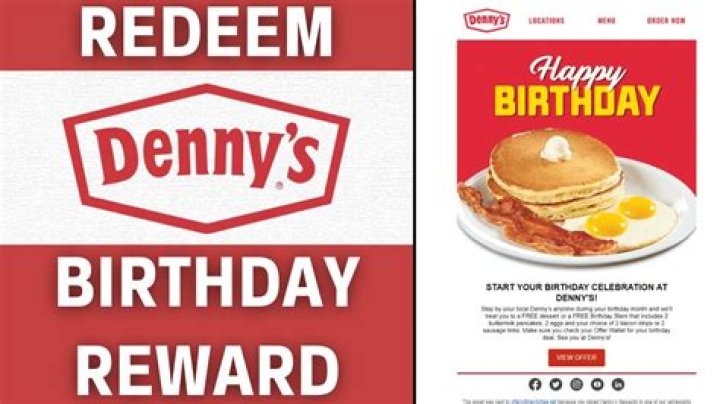 Denny’s free birthday offer is a free Grand Slam breakfast. The offer is only valid on the day of your birthday, as opposed to the entire week like some restaurants, so no dilly dallying!