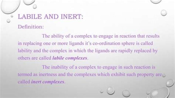 Labile – a compound that undergoes reactions with a relatively high rate of. substitution. Inert – a compound that undergoes reactions with a slow rate of substitution.What is labile in microbiology?