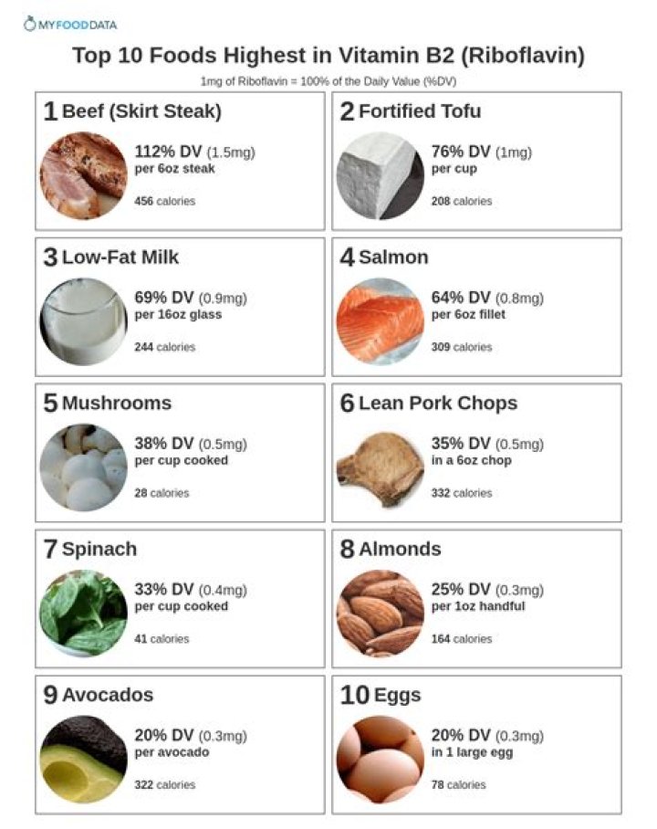 Dairy milk.Yogurt.Cheese.Eggs.Lean beef and pork.Organ meats (beef liver)Chicken breast.Salmon.