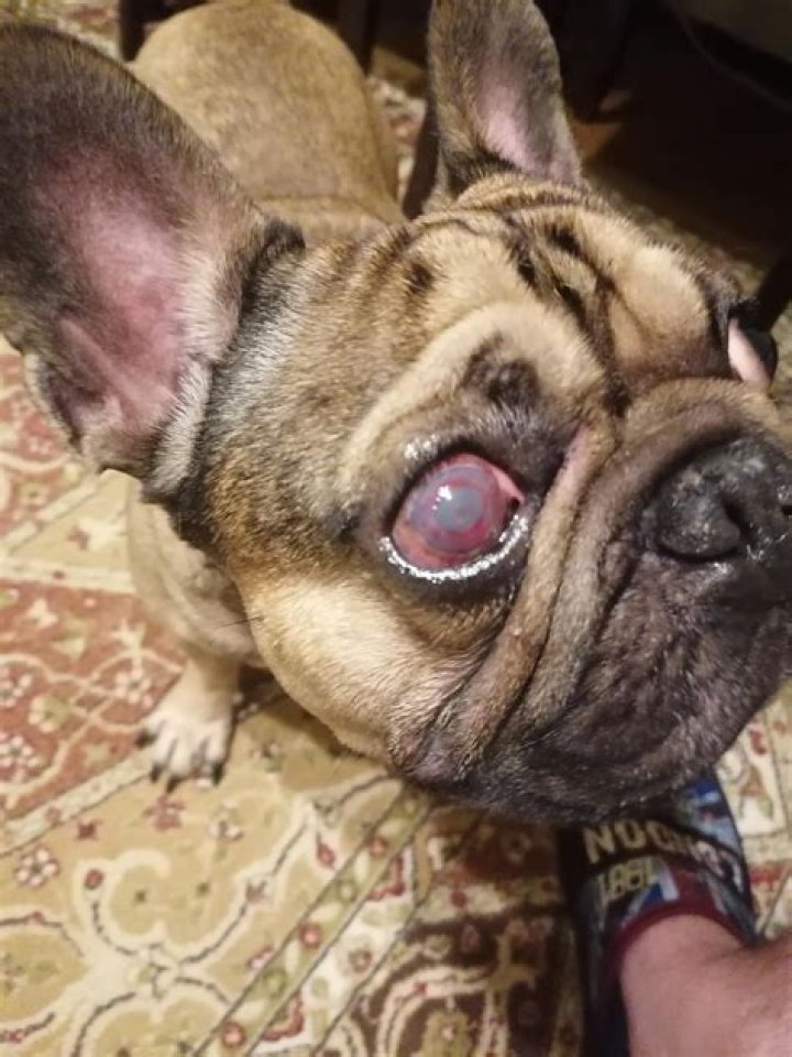 The front of the eye is very thin, deep ulcers can cause the eye to burst. A burst eye may need removal or referral to a specialist eye clinic. If caught early enough, surgery to repair a burst eye is occasionally possible. Common causes include injuries, dry eye, infections and entropian (in-turning eyelids).