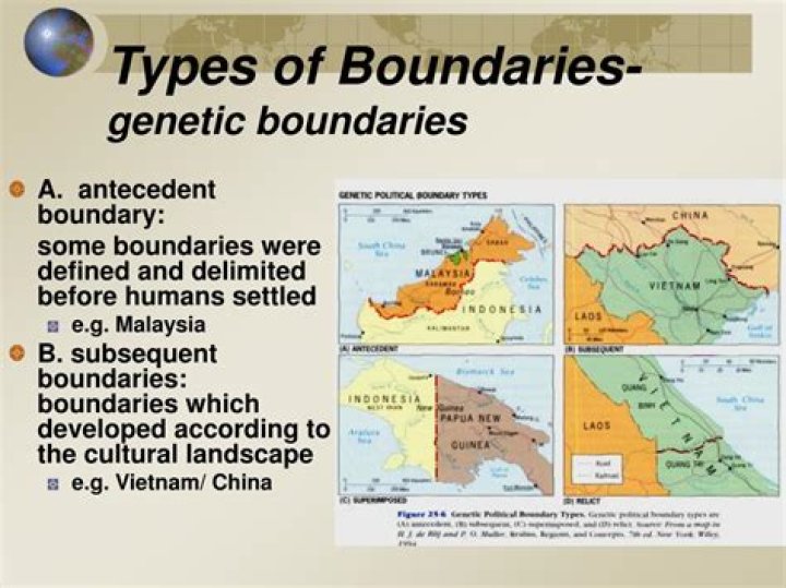 exist before humans cultures developed into their current forms. Many physical political boundaries grew as antecedent boundaries. a boundary created before the present day cultural landscape developed. Lines resulting from conflict or cultural change such as war and migration.