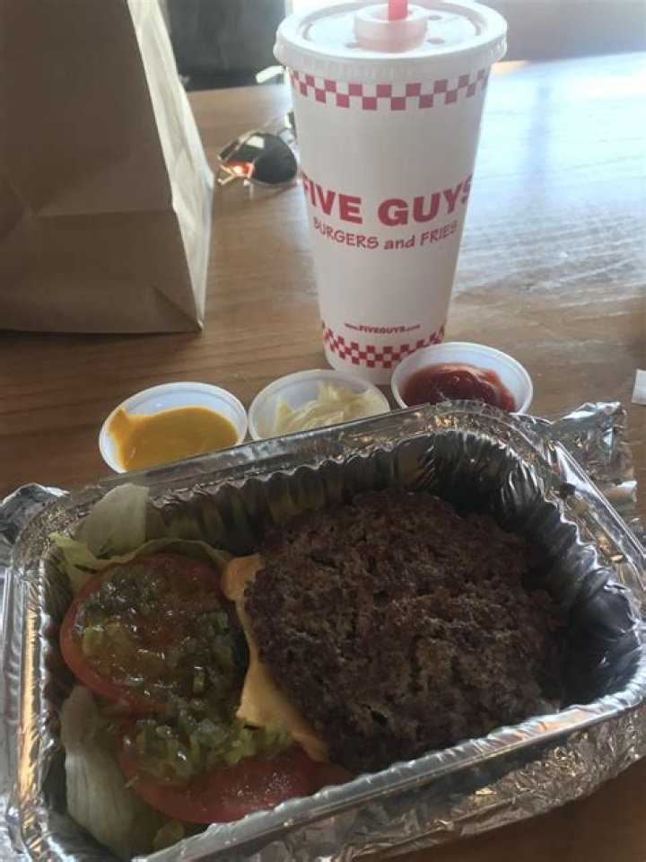 Burger Bowl You wouldn’t think of Five Guys as the place to go if you’re trying to eat healthy, but for those watching carbs, there is a solution (as long as you can avoid the fries). Order a burger bowl with as many toppings as you want; it’ll come in a tin without the bun. Follow Delish on Instagram.What is the best thing to order at Five Guys?