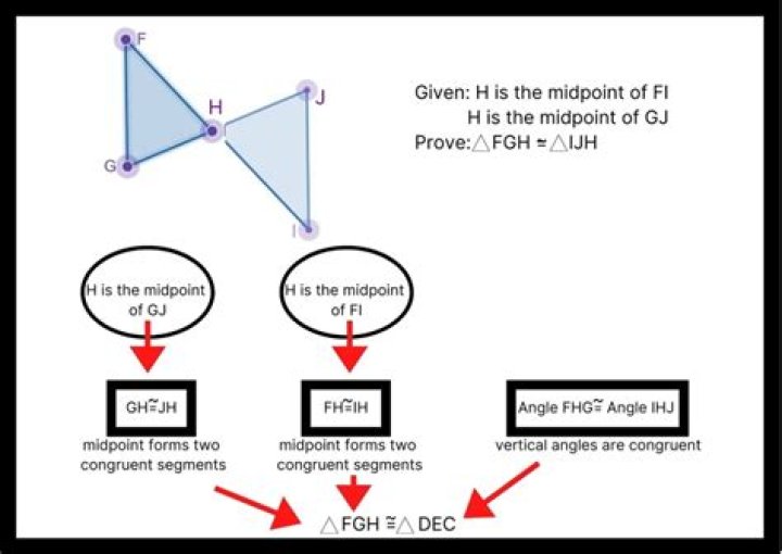 StatementsReasons∠WHI ≅ ∠ZHIDefinition, ∠ bisectorHI ≅ HIReflexive Property of Equality△HWI ≅ △ HZISide-Angle-Side Postulate∠W ≅ ∠ ZCorresponding parts of congruent triangles are congruent (CPCTC)