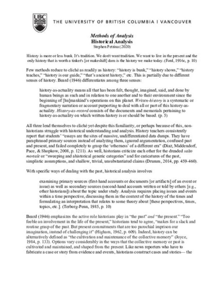 Can a historical writing be an analysis?Historical writing should always be analytic, moving beyond simple description. Critical historical analysis examines relationships and distinctions that are not immediately obvious.