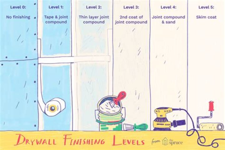 Drywall Finishing Levels Level 1: This level means that drywall joint tape has been embedded in joint compound, but nothing further has been done. Level 2: This next level means that you have skimmed a thin coat of joint compound over the tape and covered the drywall screw holes.
