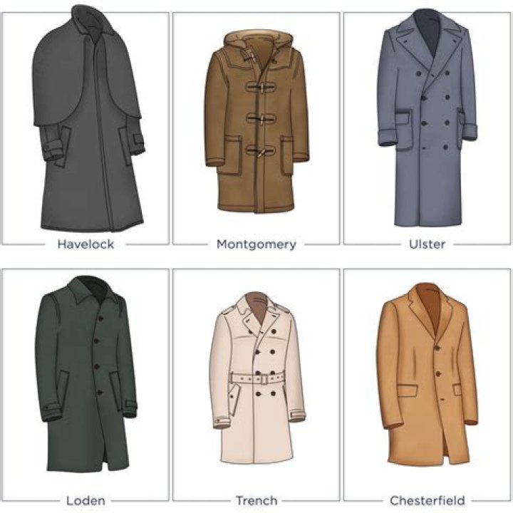- Overcoat. Named for its place in a man’s outfit, the overcoat is meant to be worn over every other article of clothing. …