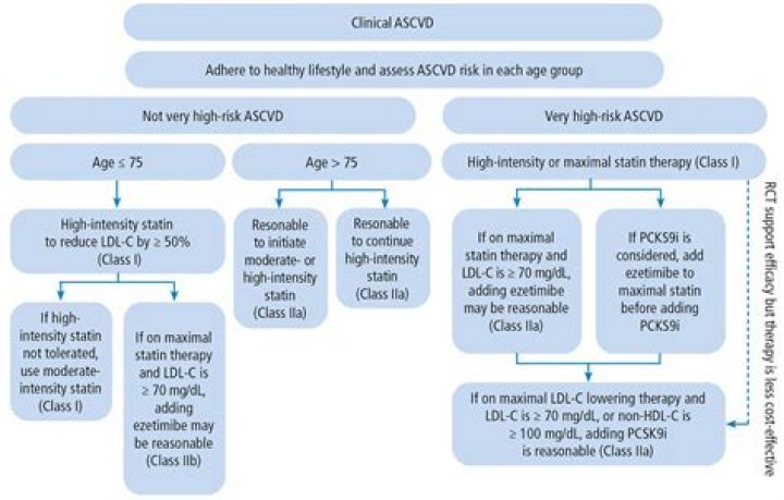 Clinical atherosclerotic cardiovascular disease (ASCVD) includes acute coronary syndrome (ACS), those with history of myocardial infarction (MI), stable or unstable angina or coronary or other arterial revascularization, stroke, transient ischemic attack (TIA), or peripheral artery disease (PAD) including aortic …