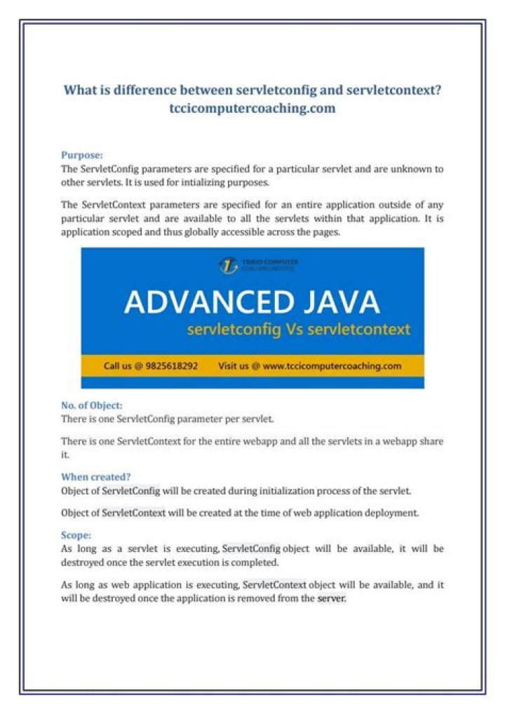 Use the super.init(ServletConfig) method to pass the ServletConfig object to your servlet. It is necessary because it provides servlets with access to the ServletContext object and initialization parameters.How many ServletContext objects are available for?