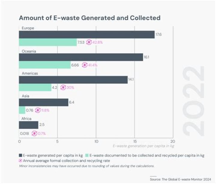 Latest estimates (see The Global E-waste Monitor 2017) show that the world now discards approximately 50 million tonnes of e-waste per year — an amount greater in weight than all of the commercial airliners ever made — of which only about 20% is formally recycled.