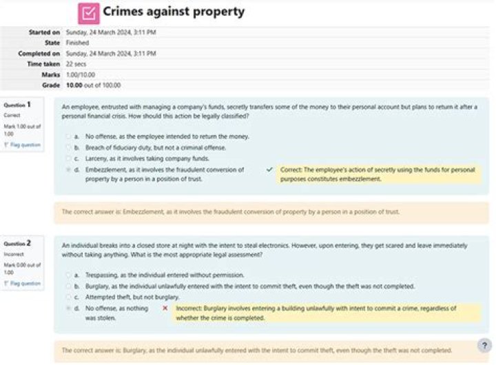 Renowned for its high difficulty and low passage rates, the Baby Bar is a one-day, seven-hour exam made up of four essays and 100 multiple-choice questions in Contracts, Criminal Law, and Torts. On an 800 point scale, examinees have to score a minimum of a 560, or 70% accuracy rate, to pass.