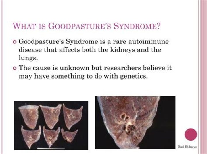 Goodpasture syndrome is a rare and potentially life-threatening autoimmune disease. It causes buildup of autoimmune proteins in the kidneys and lungs that leads to damage of these organs. The disorder is named after Dr. Ernest Goodpasture, who first identified the syndrome in 1919.