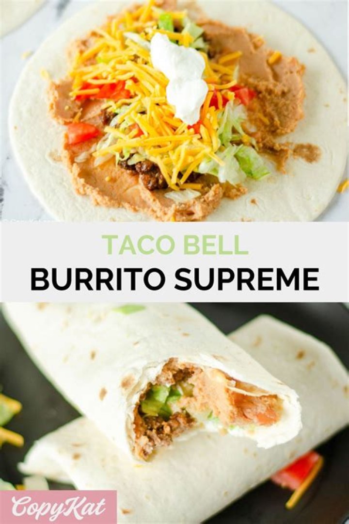 What is in a Taco Bell Burrito Supreme? The standard Taco Bell burrito supreme has seasoned beef, refried beans, cheese, sour cream, lettuce, tomatoes, onions, and red sauce. You can add on black beans, jalapeno peppers, fiesta potatoes, or seasoned rice.What is in the $5 burrito box at Taco Bell?