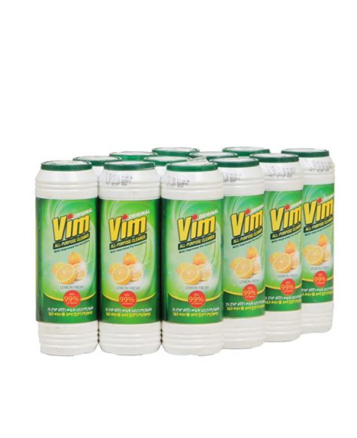 Product description Vim classic scourer powder with extra whitening, it removes grease and stains while its sanitising action kills germs, leaving surfaces hygienically clean.