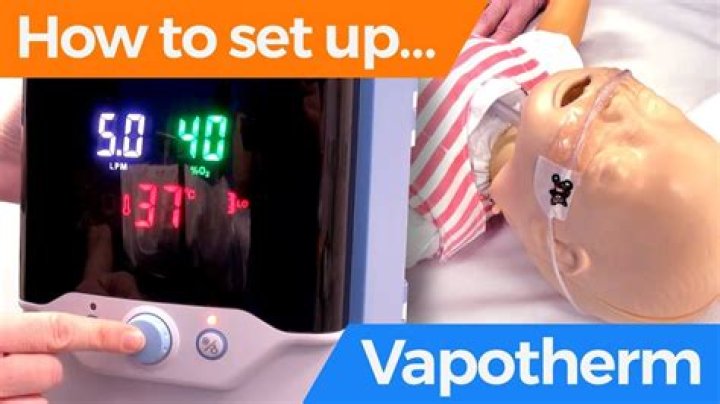 PURPOSE: The Vapotherm device uses membrane transfer technology to generate a high flow of warm humidified gas. Gas can be delivered via nasal cannula at flows of 5-40 L/min and at temperatures of 33-43°C.