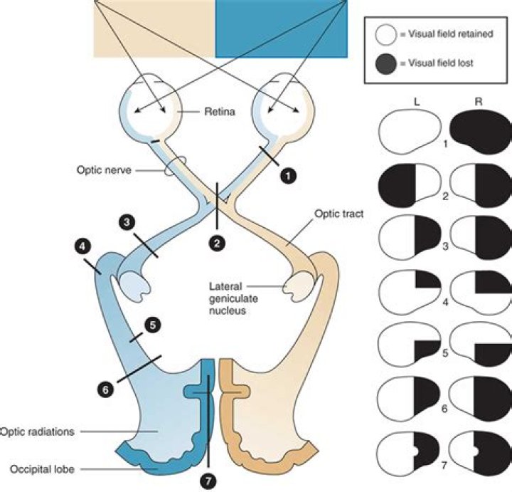Homonymous superior quadrantanopia, also called “pie in the sky,” causes a field deficit in the superior field of both eyes for the same side. This visual field deficit is bilateral and involves retrochiasmal pathways.