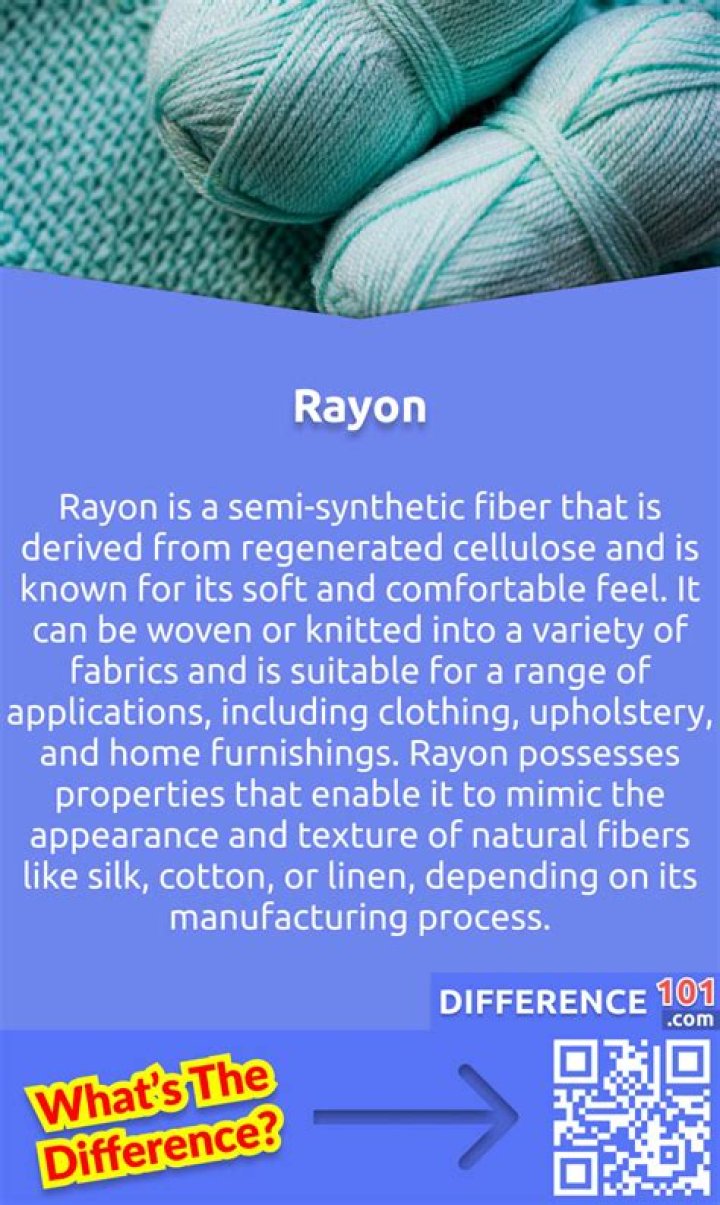 Rayon is a natural-based material that is made from the cellulose obtained from wood pulp or cotton. … There are several grades of rayon that can imitate the look and texture of other natural fibers such as cotton, linen, and silk.