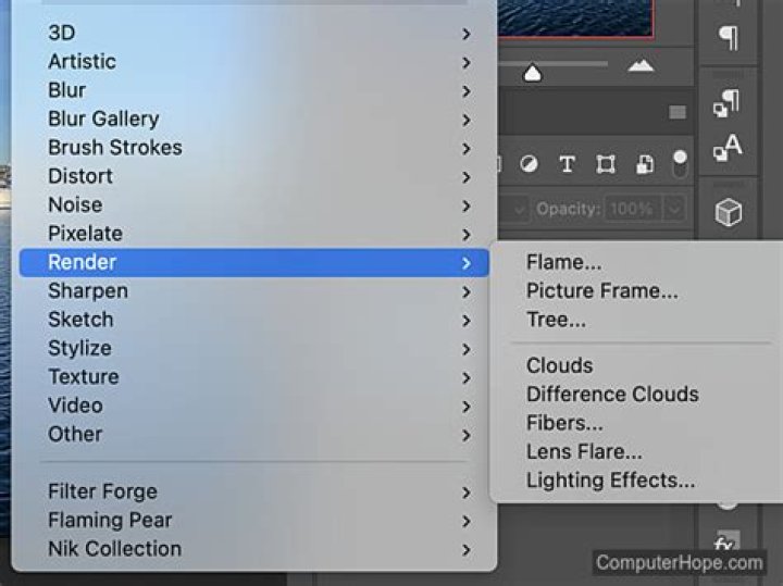 Click “Filter” then “Render” on the Photoshop main menu. You will see five different options—3D transformation, two different cloud effects, lens flare (a light in the middle of the picture), and lighting effects. In some versions you may also have a “fiber” effect that will make the image look like woven fibers.Which filter is best in Photoshop?