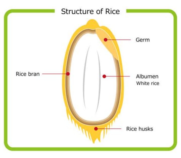 A grain of rice is a seed that contains an embryonic rice plant, stored food and a protective coat. … The germ is the plant EMBRYO from which a plant emerges. The bran layers include layers of fibrous tissue with protein, vitamins, minerals and oil. ENDOSPERM is found beneath the bran layers.