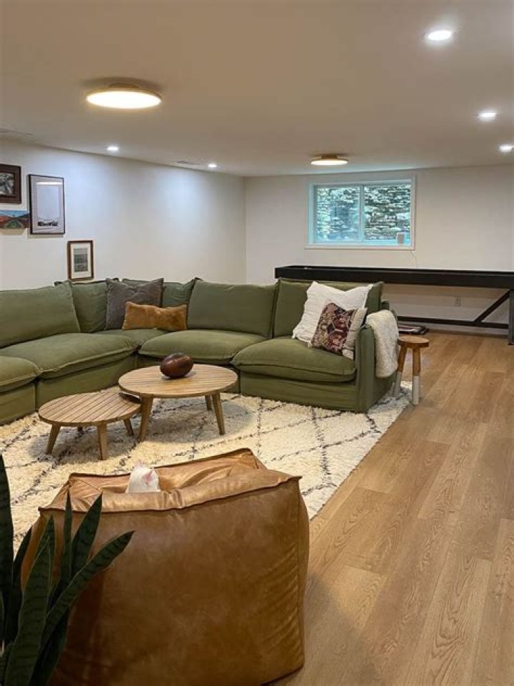 The number of recessed lights in your basement will depend on the overall size and shape. Our designers use a general rule that one recessed light will cover about 70 square feet. When determining how many lights will be needed it is also good to think about where the lights will be placed.