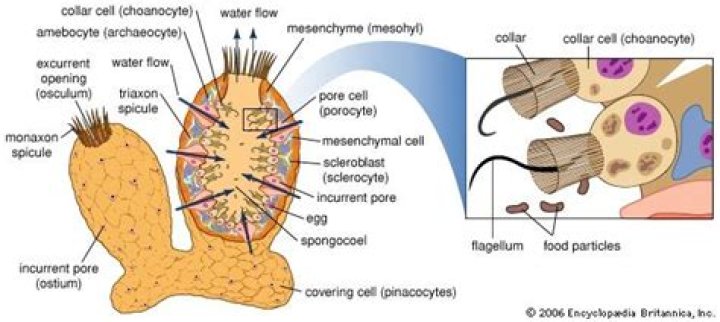 - choanocyte – also called collar cells, choanocytes line the inner cavity of the sponge. …