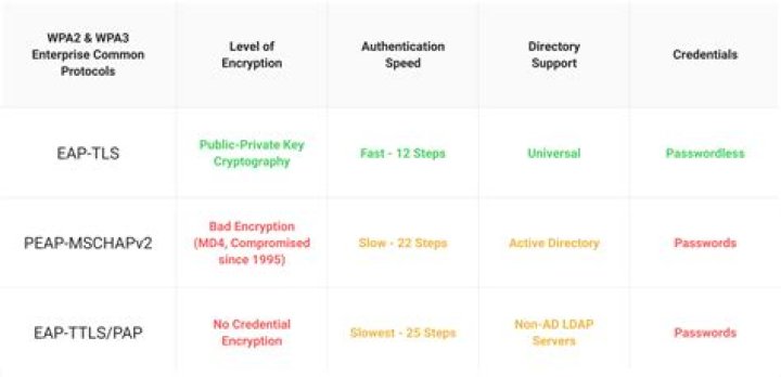 While both EAP methods protect the data being sent over-the-air, they differ in overall security, efficiency, and user experience. EAP-TLS with certificate-based authentication is simply more secure and offers a superior user experience with benefits in efficiency and protection.